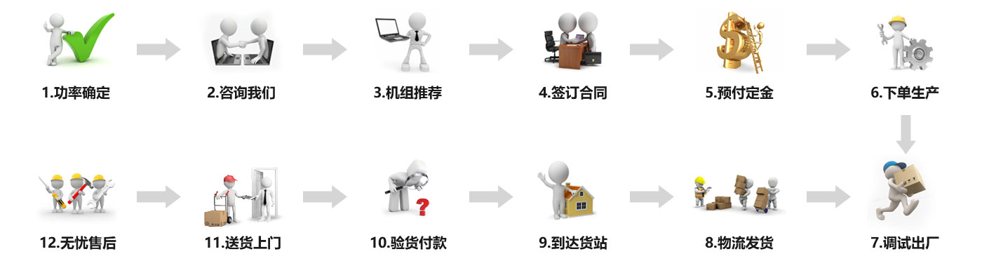 本公司提供了经多年积累的售后服务工作经验,包括人员培训、定期回访和保修承诺等,对发电机组定期维护保养和维护。